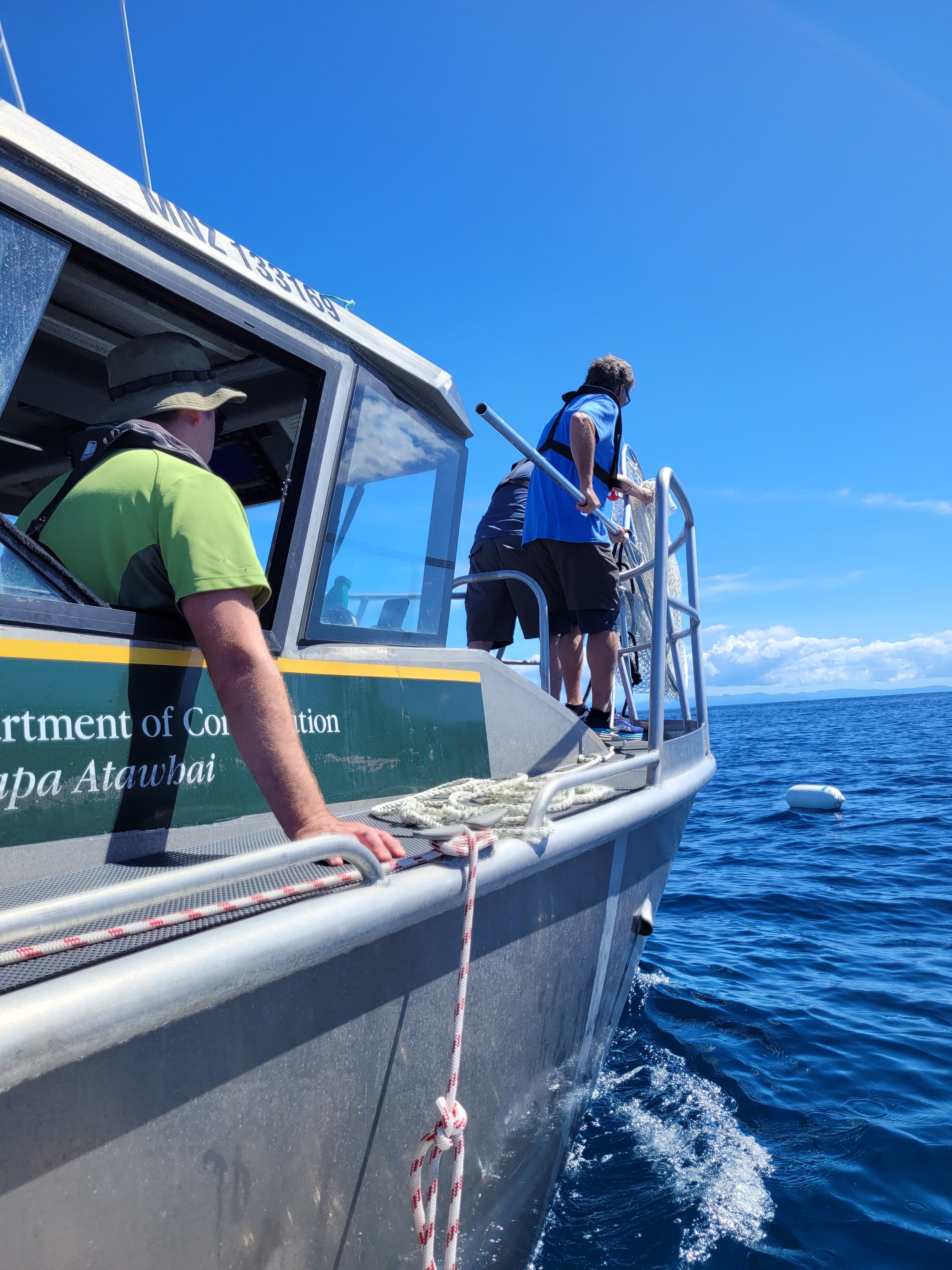 Along with our international experts, we assembled an array of technical equipment, and formed a team including Tauranga DOC staff, Tuhua Island kaitiaki, and a local marine conservationist, all eager to embrace the challenge of finding and netting such large animals.